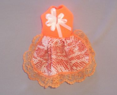 The waist measurement on this Dress is approx 7", it does have a bit of stretch in it, and the outfit is approx 6 1/4" from neck to tail.